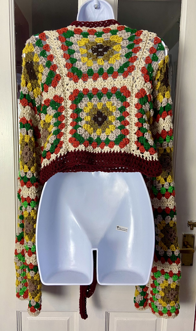 Introducing our Crochet Granny Square Wrap Cardigan, crafted with love in an array of vintage colours. This cardigan is versatile and stylish, fitting sizes 8-14 with ease. It's machine washable at 30 degrees, so you don't have to worry about the hassle of hand-washing. Dry it flat for best results and avoid tumble drying to preserve its longevity. Its unique design is perfect for layering over any outfit and is sure to keep you cozy during colder seasons. A must-have addition to your wardrobe for a touch of retro flair!