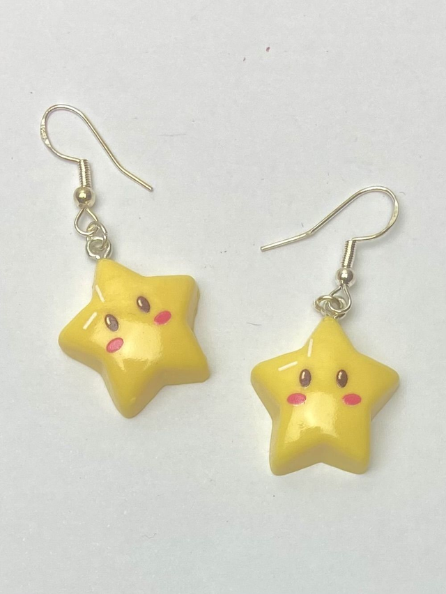Cartoon star earrings, they look like they’ve come straight out of a video game don’t they? Acrylic stars with silver plated hooks.