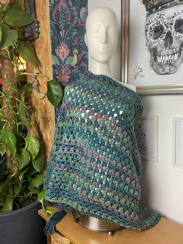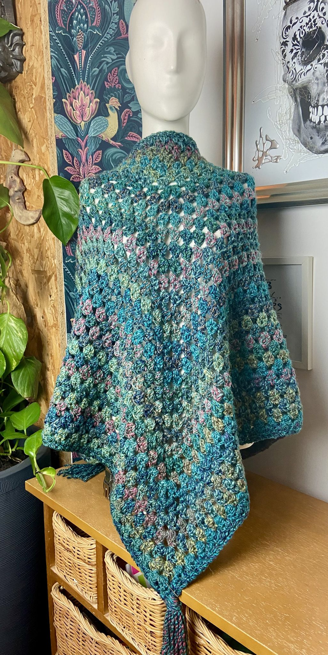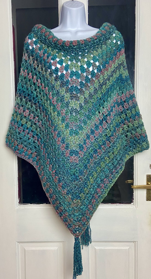 This chunky poncho comes in vibrant shades of green. One size fits most, made with acrylic yarn so easy to wash. Layer over or under a winter jacket for extra warmth. Handmade, crochet.