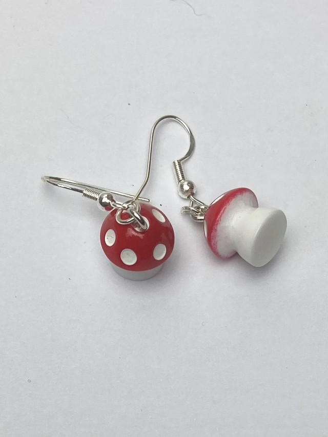 These are sweet. Little mushrooms, made from acrylic with silver plated hooks.