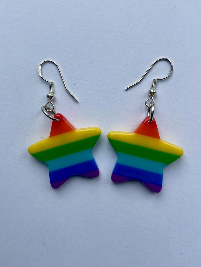 Acrylic rainbow stars on silver plated hooks.
